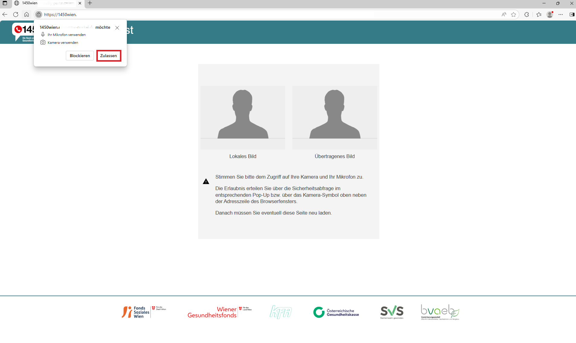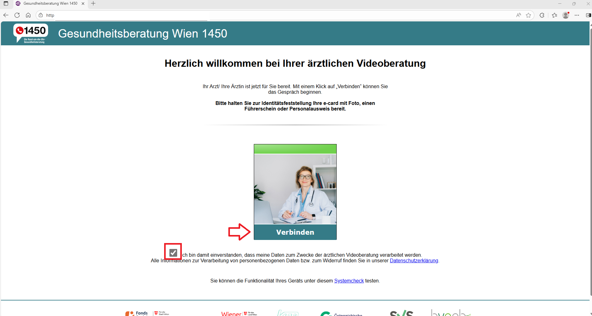 Hinweis: Ob ein Fall für die ärztliche Videoberatung geeignet ist, wird im Gespräch mit der Gesundheitsberatung 1450 Wien identifiziert.