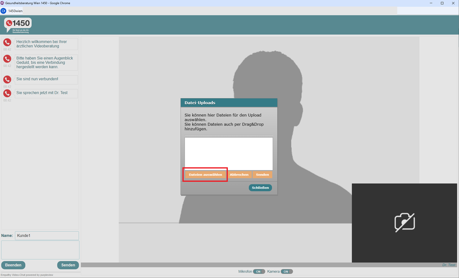 - Ob ein Fall für die ärztliche Videoberatung geeignet ist, wird im Gespräch mit 1450 Wien festgestellt.