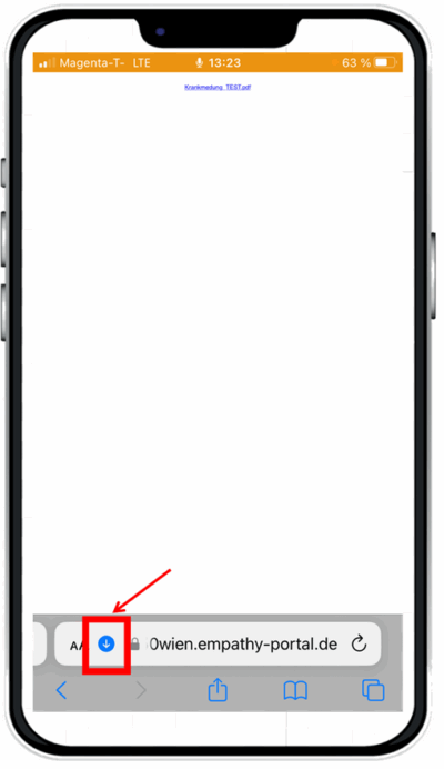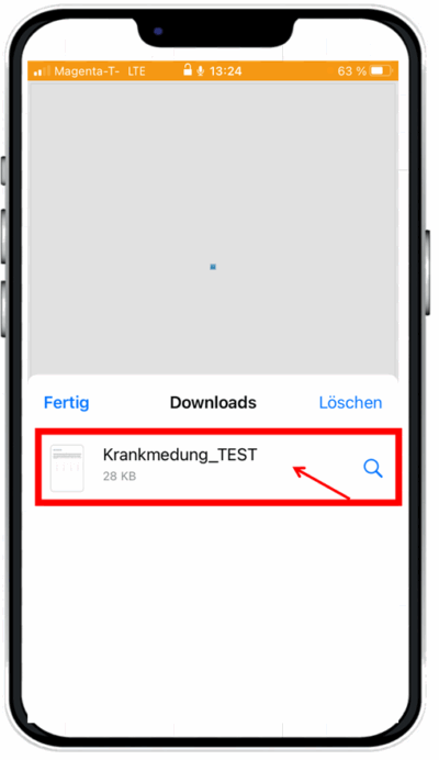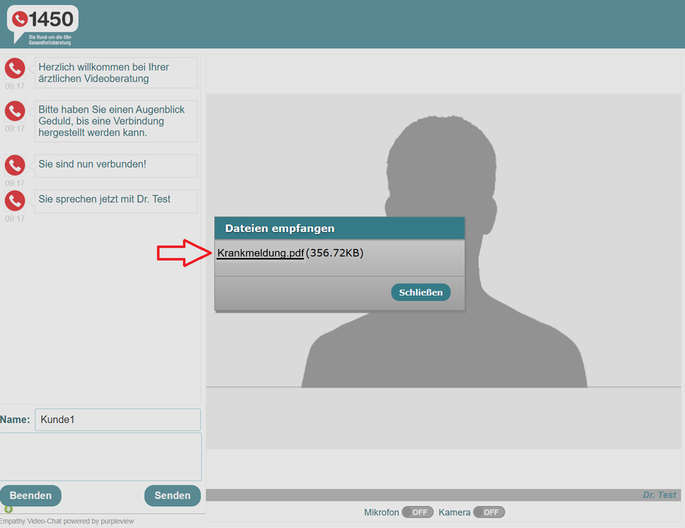 Schließen Sie das Fenster zum „Datei empfangen“ und nun sehen Sie die:den Ärzt:in wie zuvor. Über den Pfeil kommen Sie wieder zum Download-Ordner: