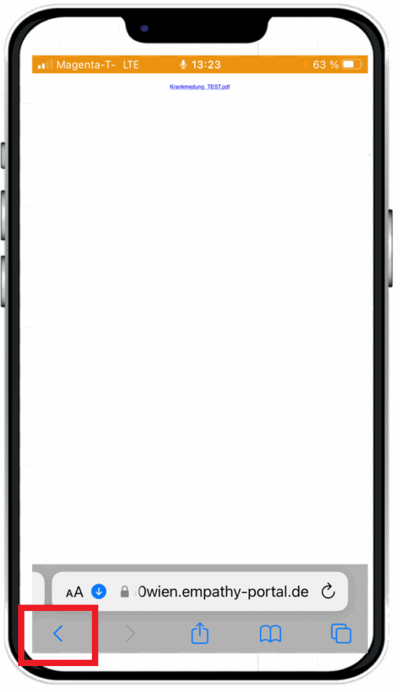 Um zurück zum Videodialog mit der:m Ärzt:in zu gelangen, klicken Sie bitte auf den „Pfeil zurück“: